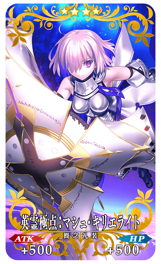 ※本召喚中只限概念禮裝為Pick Up對象。由於★5(SSR)從者非Pick Up對象,本召喚為「確定召喚」的對象外。 ※本召喚中,故事召喚及常駐的概念禮裝為抽出對象外。「第2部 終章」限定概念禮裝只限「英靈極點」會抽出。 ※★4(SR)以上確定包含從者與「第2部 終章」限定概念禮裝「英靈極點」。 ※召喚中,各概念禮裝繪製的19位★4(SR)以上的從者外,所有的★3(R)常駐從者皆為抽出對象。 ※「★4(SR)BB」與「瑪修・基利艾拉特」,本召喚中為抽出對象外。 ※在2018年12月31日(二) 23:00以後新配信的主線故事及期間限定活動、一部份關卡、宣傳活動及召喚中,會顯示隱藏真名的對象從者真名。 ※本頁面皆為開發中圖片。會有與實際圖片相異的情況。