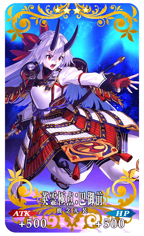 ※上述「★4(SR)巴御前(Archer)(Archer Inferno)」的卡面為靈基再臨第2階段。