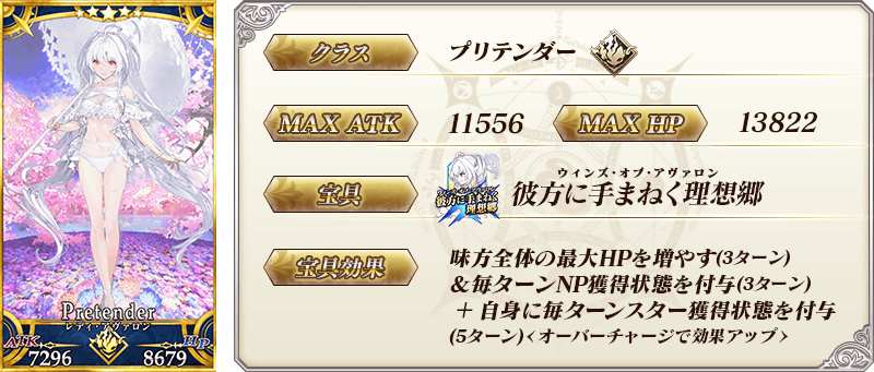 ※上述「★5(SSR)阿瓦隆女士」的卡面為靈基再臨第2階段。