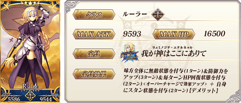 ※上述「★5(SSR)貞德(Ruler)」的卡面為靈基再臨第2階段。