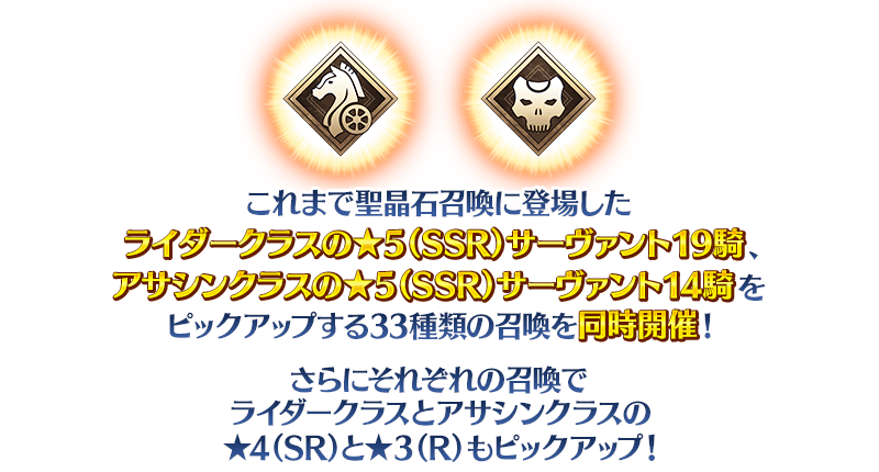 ◆『「冠位戴冠戰:Rider」&「冠位戴冠戰:Assassin」Pick Up召喚』期間◆