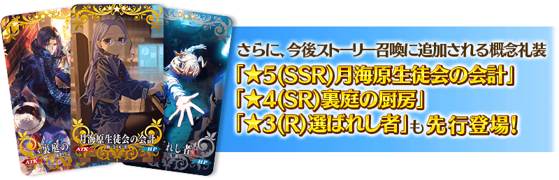 並且,今後追加故事召喚的3種概念禮裝先行登場外,翻新★4(SR)及★3(R)概念禮裝的一部份陣容!
