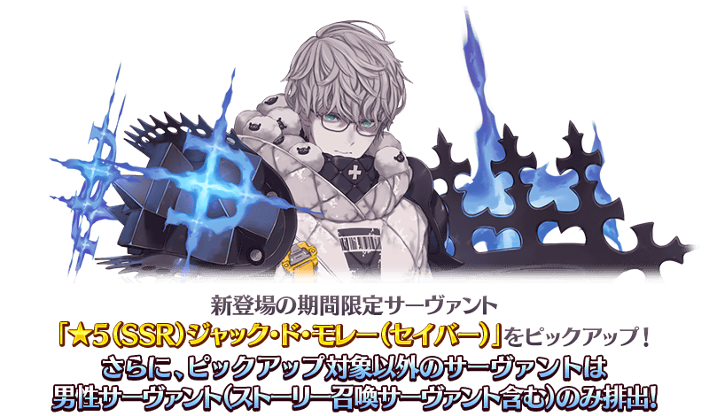 為了記念期間限定活動「CBC2026 自我風格的綁架案 ~兩位莫萊與無盡的遺產~」的開幕,新登場的期間限定從者「★5(SSR)雅克・德・莫萊(Saber)」Pick Up!