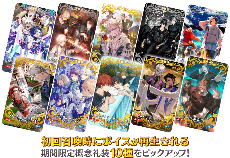 並且,成為第10次舉辦的本次迦勒底男性精選中,在初次召喚時播放語音的10種期間限定概念禮裝Pick Up!