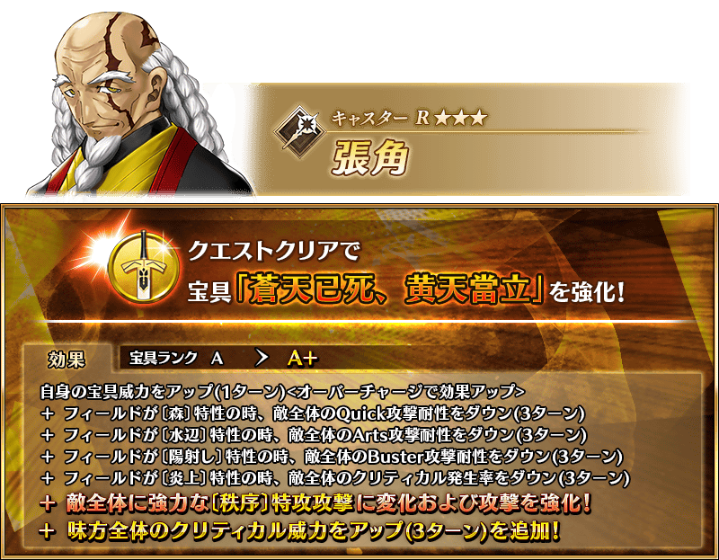「★3(R)張角」強化的特別關卡「從者強化關卡」,在迦勒底之門永久追加。