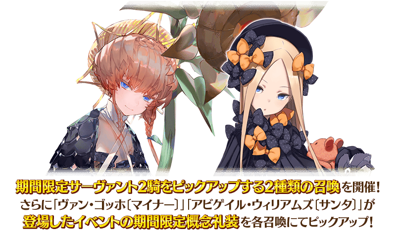 另外,「梵谷〔Miner〕」與「艾比蓋兒・威廉斯〔Santa〕」登場活動的期間限定概念禮裝在各召喚Pick Up!