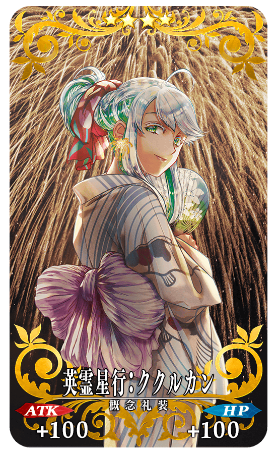 ※上述「★5(SSR)庫庫爾坎」的卡面為靈基再臨第2階段。