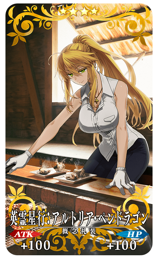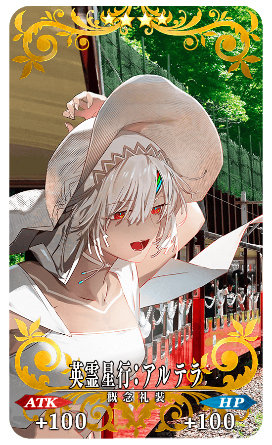 ※所有的「英霊星行」的性能皆相同。 ※「英霊星行」會在等級上限最大及最大等級抽出。 ※「英霊星行」在強化時做為素材使用時的獲得經驗值,比從故事召喚等抽出的同等級★4(SR)概念禮裝更少。