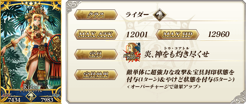 ※上述「★5(SSR)魁札爾・科亞特爾」的卡面為靈基再臨第2階段。