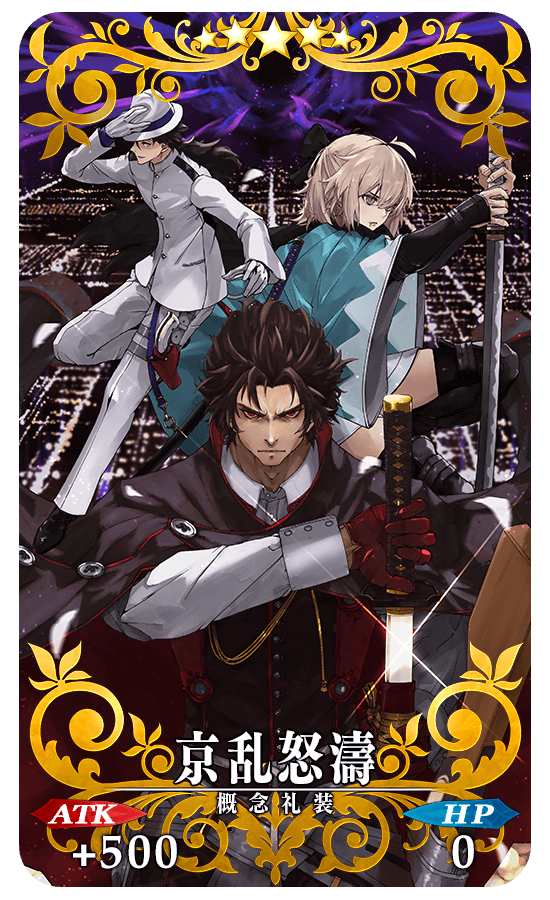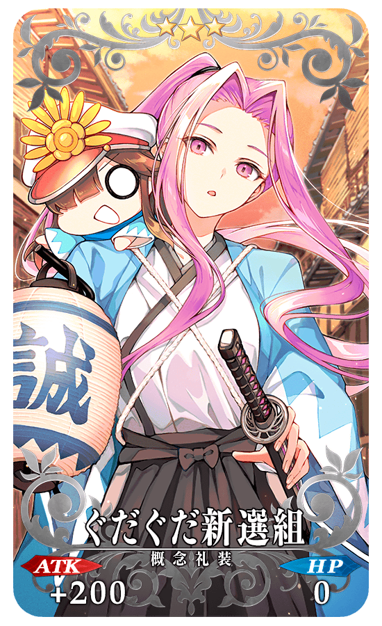裝備3種Pick Up對象期間限定概念禮裝的話,在期間限定活動「幕末交鋒神話 嘮嘮叨叨新選組・THE・END REVENGE OF MAKOTO」中活動道具的掉落獲得數會提升。