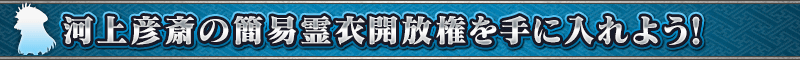 「★5(SSR)河上彥齋」的簡易靈衣「無斗笠彥齋」的開放權做為期間限定活動「幕末交鋒神話 嘮嘮叨叨新選組・THE・END REVENGE OF MAKOTO」的報酬登場!