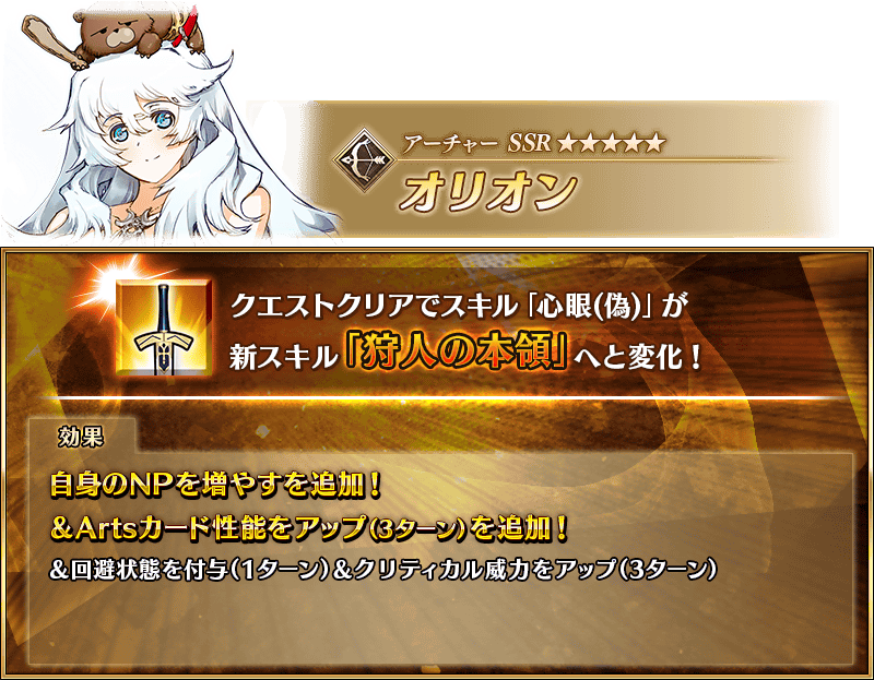 ※上述「★5(SSR)俄里翁」的立繪為靈基再臨第2階段。