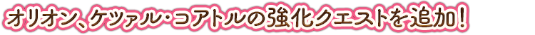 ■俄里翁、魁札爾・科亞特爾的強化關卡追加!