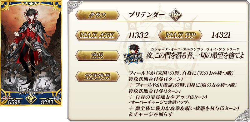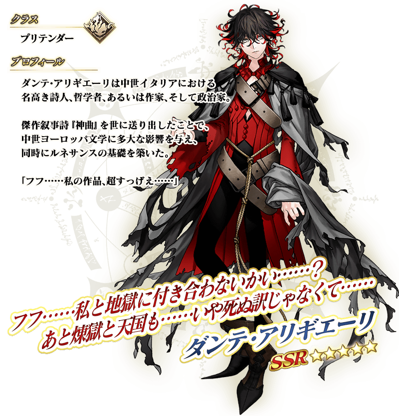 ※上述「★5(SSR)但丁・阿利吉耶里」的立繪與卡面為靈基再臨第2階段。