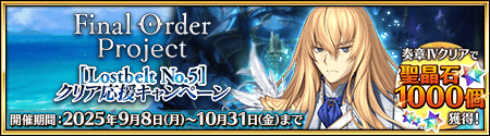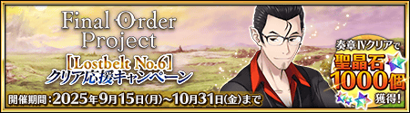 - 期間限定活動「失落的創世(Vanished Beginning) 來自未來的方舟」&「冠位戴冠戰:Rider」