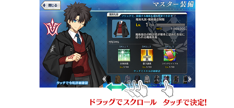 另外,持有超過顯示數魔術禮裝的情況拖曳圖示滾動的話,變得可查找想裝備的魔術禮裝。