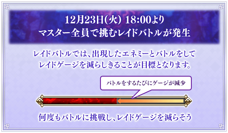 從12月23日(二) 17:00也發生參加「第2部 終章」中的所有御主共同挑戰強大敵人的團體戰。