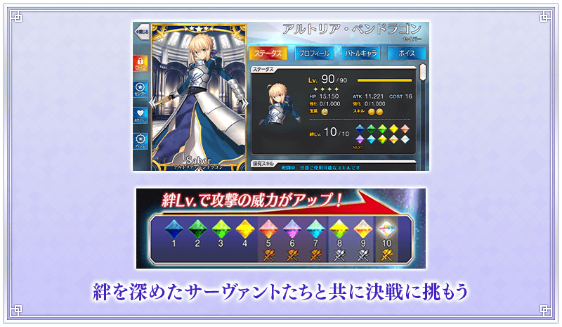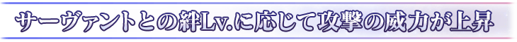 團體戰中,參加戰鬥的從者羈絆Lv.5以上的情況,根據Lv.會讓攻擊威力提升。