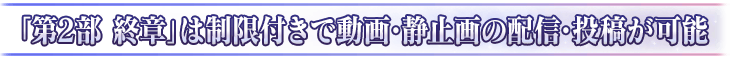 直播・上傳「第2部 終章(到團體戰決戰為止)」的遊戲遊玩影片・靜止畫時,請確認準則後記載「有劇透」等。