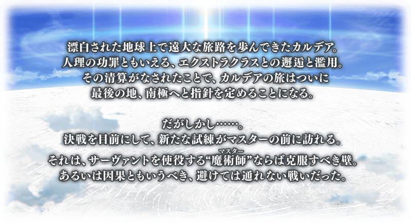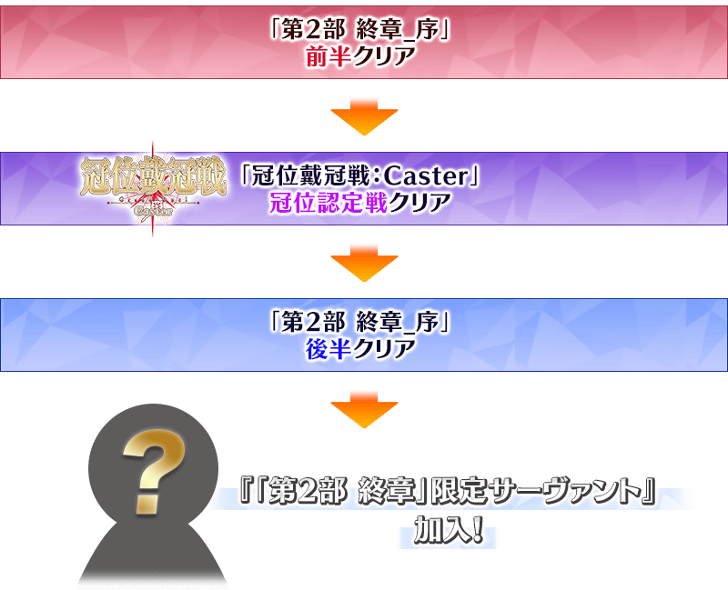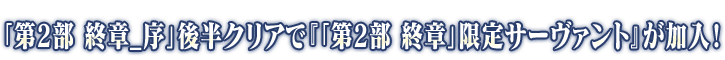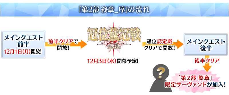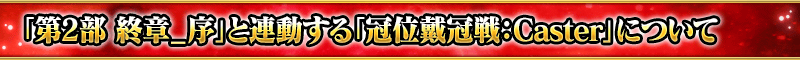 「第2部 終章_序」分成前半與後半,通過前半的話變得可參加「冠位戴冠戰:Caster」。