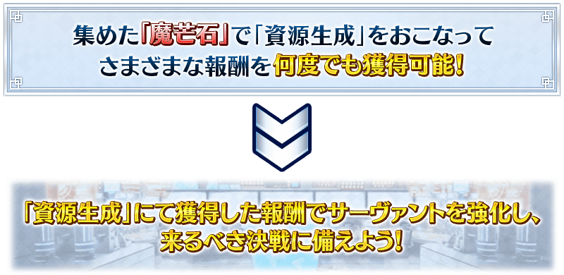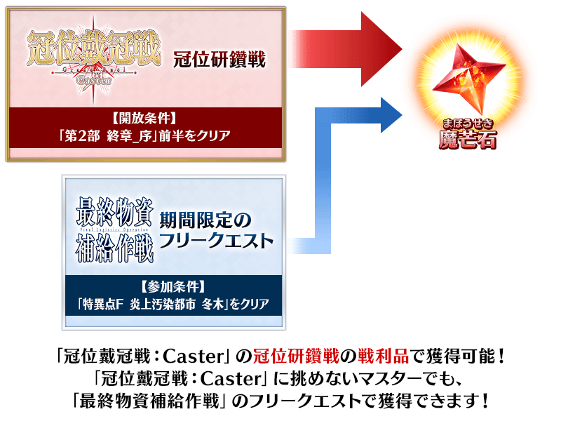 另外,與「冠位戴冠戰:Caster」同時開始在「最終物資補給作戰」想進行「資源生成」必須的「魔芒石」可做為冠位鑽研戰的戰利品獲得。