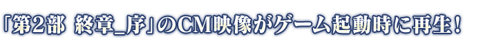 2025年12月2日(二) 17:00~12月10日(三) 11:59的期間中,在最初啟動程式時變得會播放「第2部 終章_序」的廣告影像。