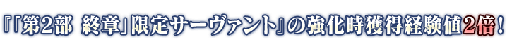 下述的期間中,強化『「第2部 終章」限定從者』時的獲得經驗值變成2倍。